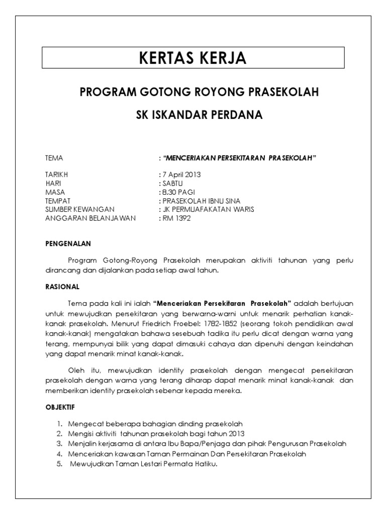 Kertas Kerja Gotong Royong Prasekolah Pdf
