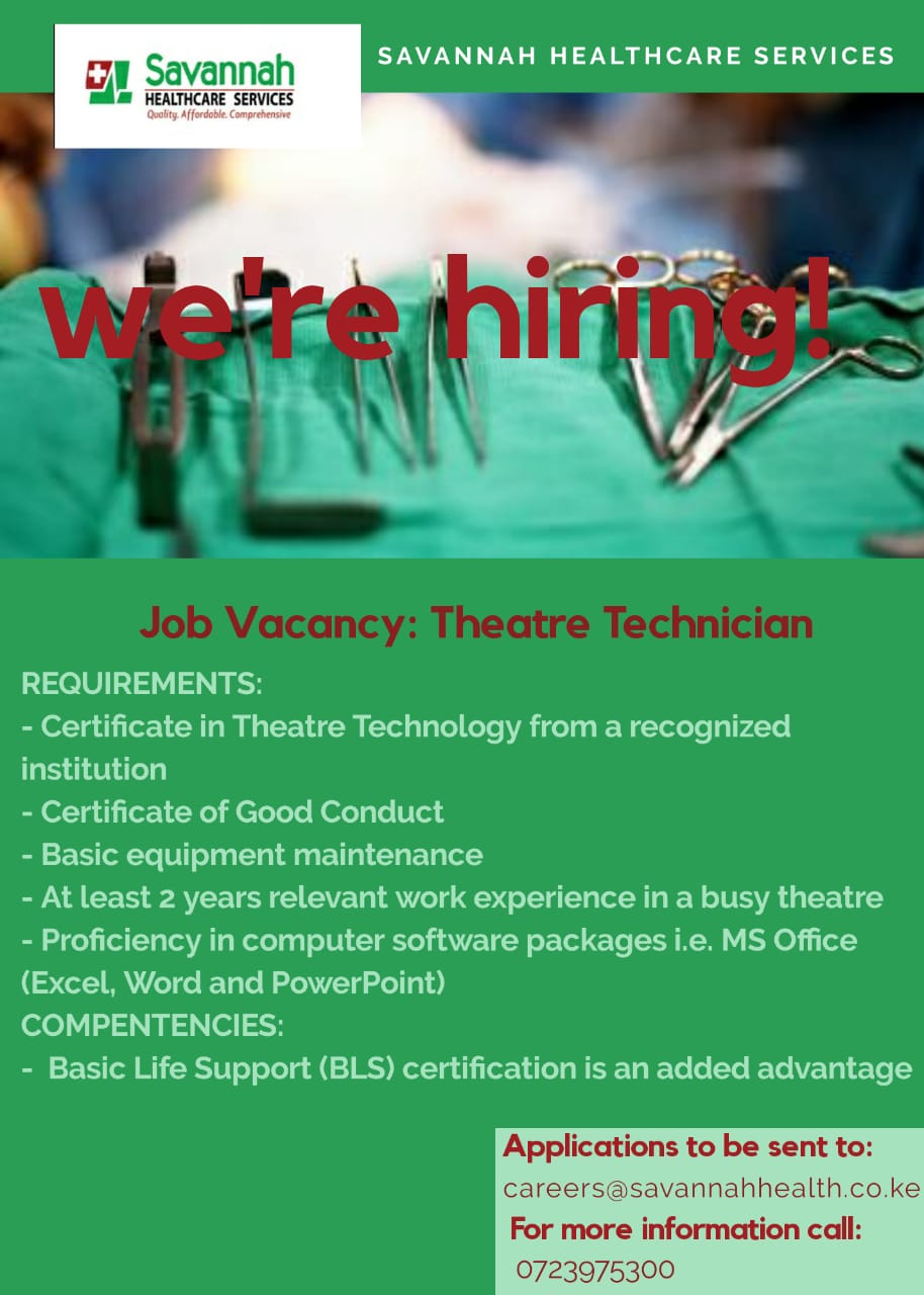Savannah Healthcare Services On Twitter We Are Hiring Theatre Technician Jobs Ikokazike Gethired Patakazi Https T Co Kauwfd6itv 0723975300 Https T Co 13tjobytr5 Twitter